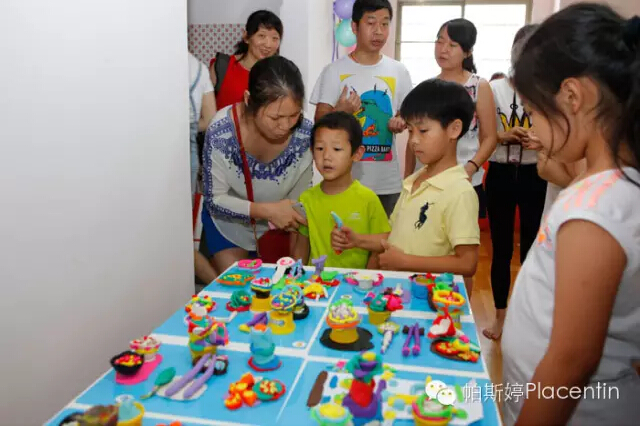 身為媽媽,我的育兒常識還是比較模糊,今天聽了譚醫(yī)生的講座,很多誤區(qū)都得到了糾正。講座后,我加入到了親子創(chuàng)作競賽中。競賽的主題是“媽媽的廚房”,以糧食和水源為主題,讓孩子用橡皮泥為媽媽捏出一套營養(yǎng)套餐,以此培養(yǎng)孩子動手能力和想象力。現(xiàn)場有一位青年藝術(shù)家指導(dǎo)創(chuàng)作,孩子們參照禮品卡片中的鮮活植物營養(yǎng)套餐,結(jié)合自己的想象,做出了形態(tài)不一的作品。媽媽們加入的時候,競賽已到白熱化階段,親子們一起努力,完成完美的作品。
